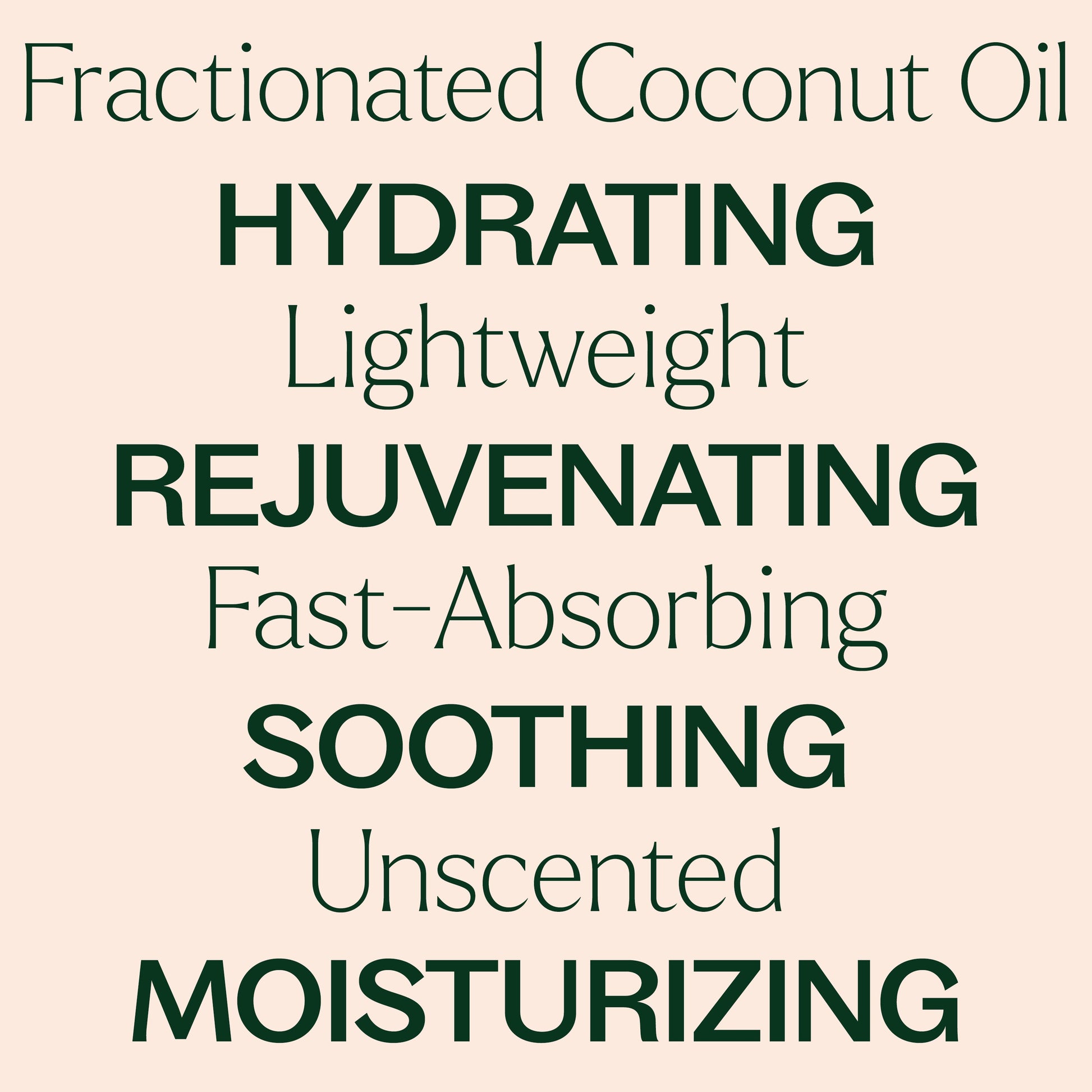 Fractionated Coconut Oil MCT (Medium-Chain Triglyceride) is a literal “fraction” of Virgin Coconut Oil and is produced by a heating process that isolates medium-chain triglycerides from other fatty acids. This allows Fractionated Coconut Oil to retain the same incredible moisturizing ability as Virgin Coconut Oil. However, unlike Virgin Coconut Oil, Fractionated Coconut Oil remains a liquid until introduced to below freezing temperatures.