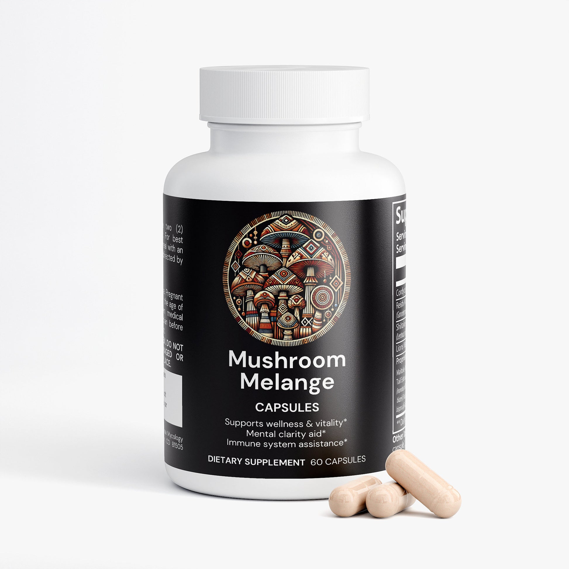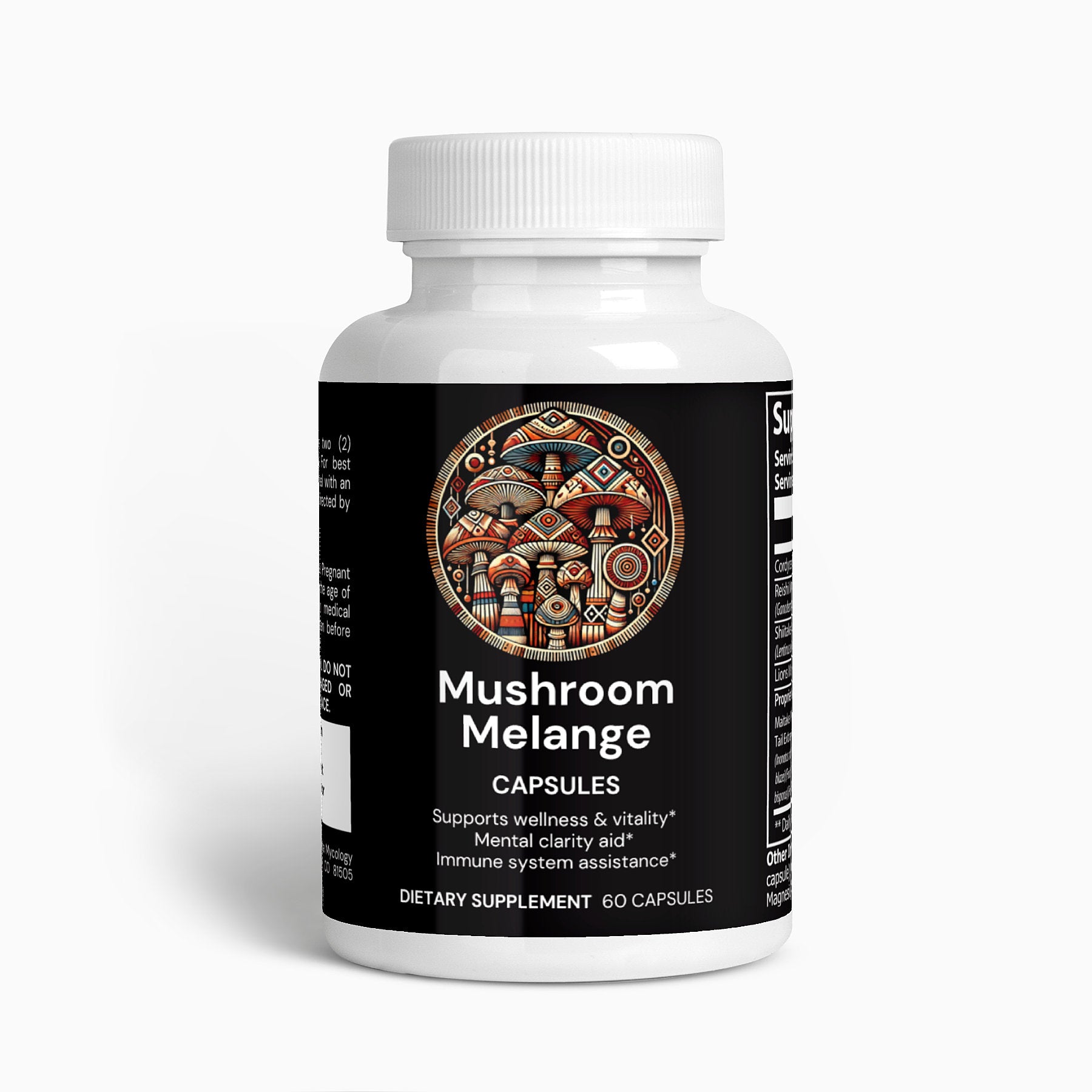 Ingredients: Cordyceps Sinensis Powder, Reishi Mushroom Extract, Shiitake Mushroom Extract, Lions Mane, Proprietary Blend (Maitake Mushroom Extract, Turkey Tail Extract, Chaga Mushroom Extract, Royal Sun Agaricus Extract, White Button Mushroom Extract, Black Fungus Extract, Cellulose (Vegetable Capsule), Microcrystalline Cellulose, Magnesium Stearate.