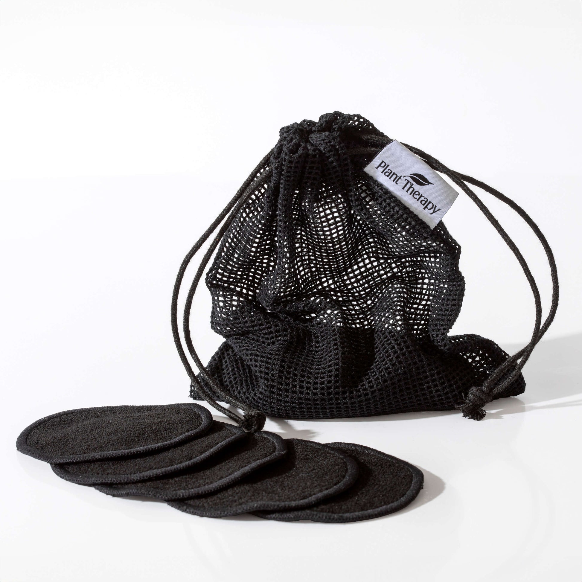 Each pack includes 10 black pads, measuring 8 cm, in a single 100% cotton mesh bag. To wash, put the pads in the mesh bag and toss into your washing machine. Alternatively, you can wash each pad by hand using soap and water. Let them air dry or put them in the dryer.