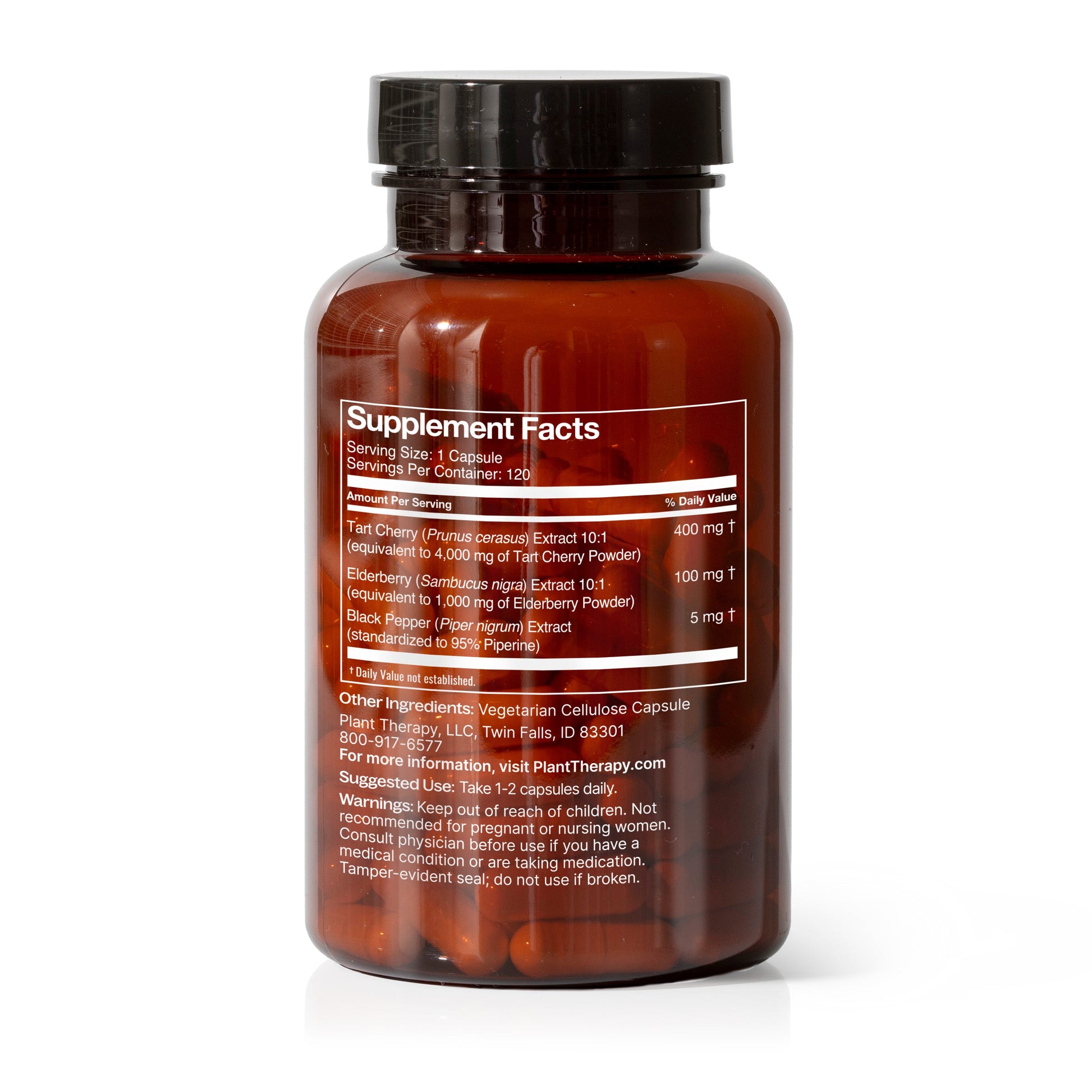 Looking for an easy, natural way to fortify your immune system, enjoy quality sleep, and give your body an antioxidant boost? With our Tart Cherry and Elderberry supplement, you’ll get all the vibrant goodness of these superfruits in one delicious, easy-to-take form. Whether it’s starting your day with a burst of vitality or winding down with a comforting nightcap, our blend supports your wellness journey beautifully. Rich in essential vitamins and antioxidants, Elderberries help strengthen your immune system and increase resistance to sickness, while Tart Cherries offer vitamin C and are one of the few food sources that contain natural melatonin, helping to naturally maintain healthy sleep cycles. This combination is especially beneficial during the colder months and for those with active lifestyles. Plus, the robust antioxidant properties of both ingredients help combat oxidative stress, minimizing long-term health risks while promoting joint and circulatory health. To add even more goodness, we’ve included Black Pepper Extract, which enhances nutrient absorption and further supports your overall wellness goals. Why wait to feel your best? Dive into our vegetarian and third-party tested Tart Cherry with Elderberry supplement and let nature's finest work their magic on your health and happiness!