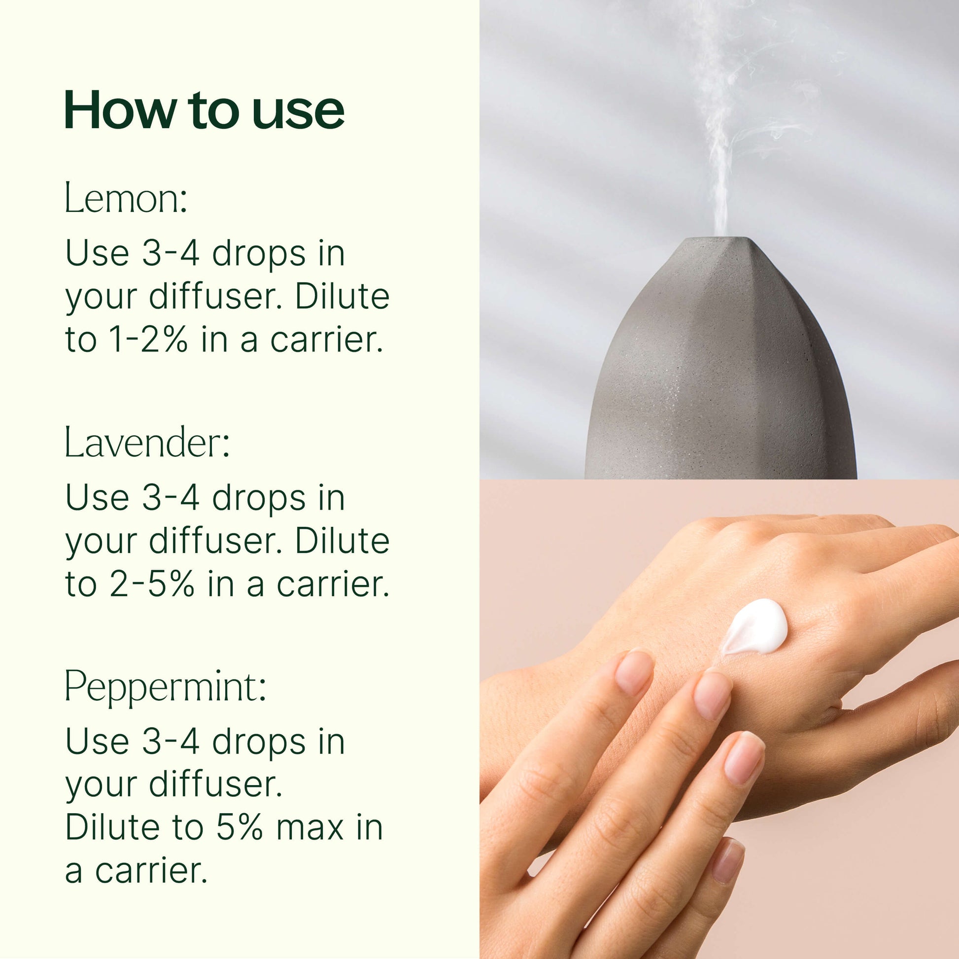 Three essential oils that you should never be without, Lemon, Lavender, and Peppermint are popular worldwide for a reason. Each oil boasts amazing benefits and a delightful aroma that you can enjoy in a wide variety of ways. Lemon's undeniably familiar, bright citrus scent is refreshing, energizing, and uplifting. Use to help support a healthy immune system, revitalize your senses, or to add a burst of lemon-y goodness in the air around you. Lavender is renowned for its many beneficial properties, including promoting relaxation and helping relieve nervous tension. Its famous skin-supporting benefits make this a great choice to add to a carrier oil and use to help soothe irritation, redness, and other discomforts. And finally, Peppermint's invigorating minty aroma and cooling properties make it a must-have to tackle tension, tightness, and everyday aches. Its fresh scent can also support alertness and focus, giving you a brain boost whenever you need it.